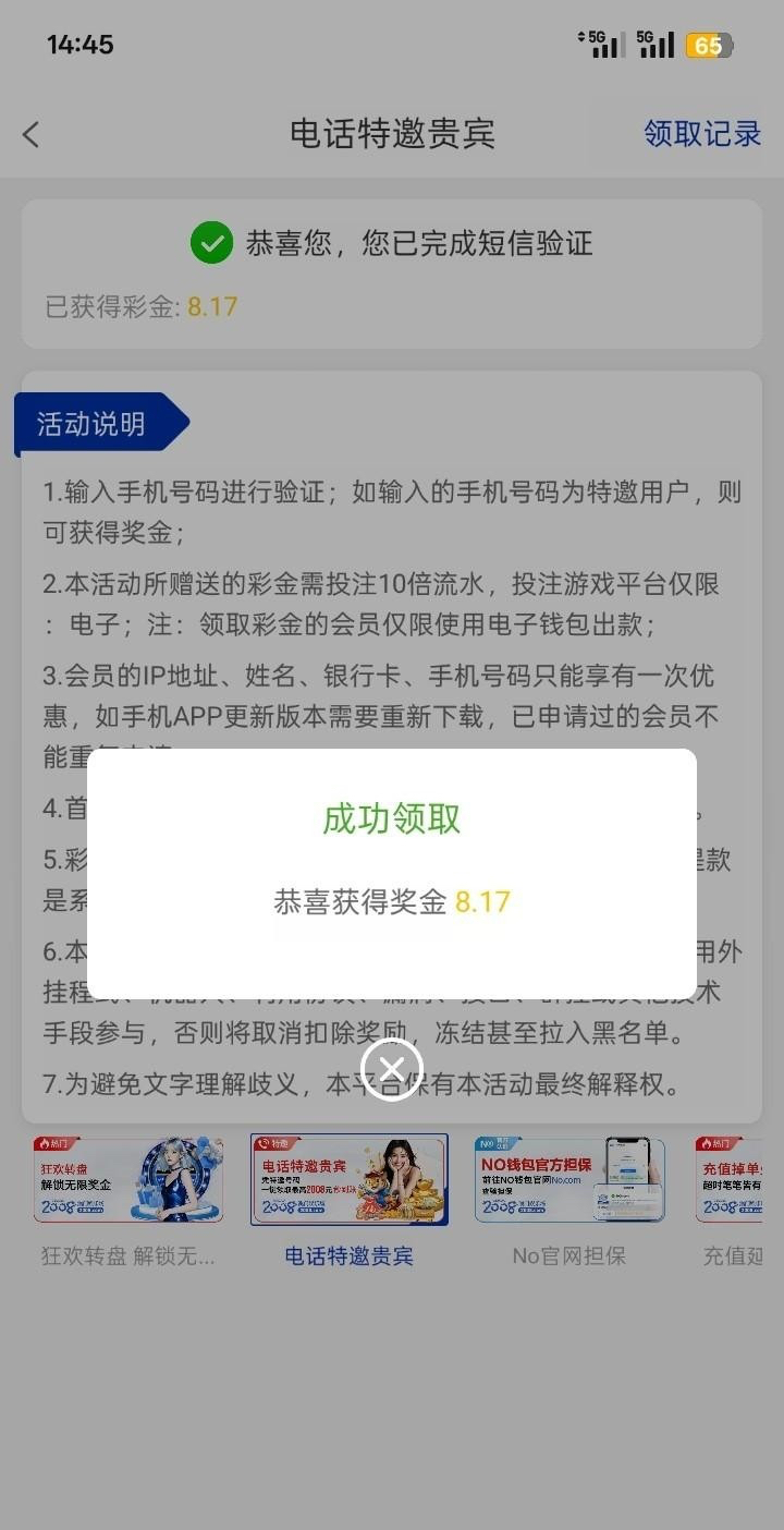 我接到电话的,下载app,注册绑定手机号在优惠那里电话特邀自助领取,2008123.com