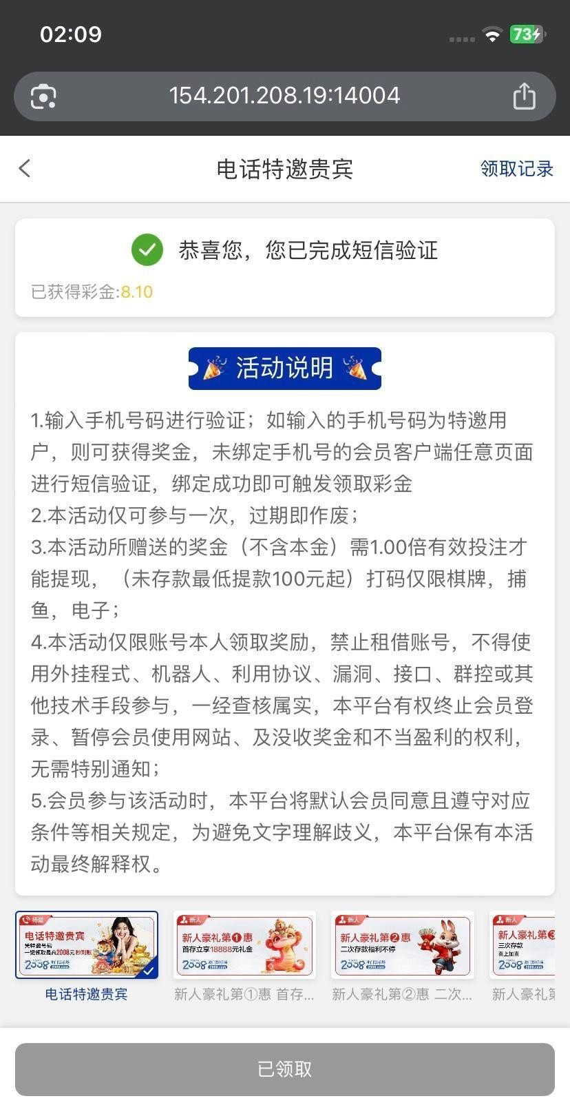 2005系列电话特邀以前注册的领取不了的现在可以领取了 我以前也是活动开始后绑定手机号才可以领取