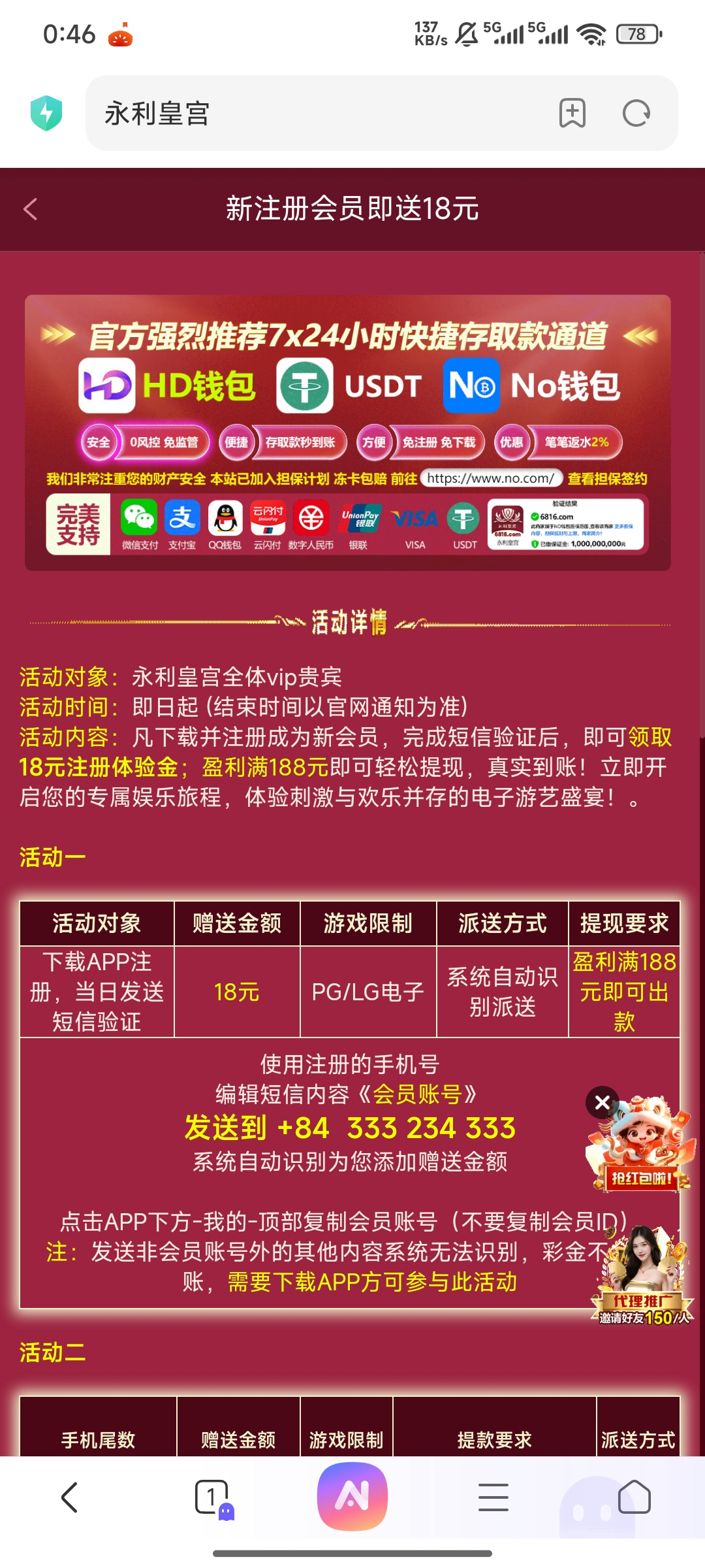 6816注册绑卡发短信,我是5分钟内到的。没下APP。要求188提。