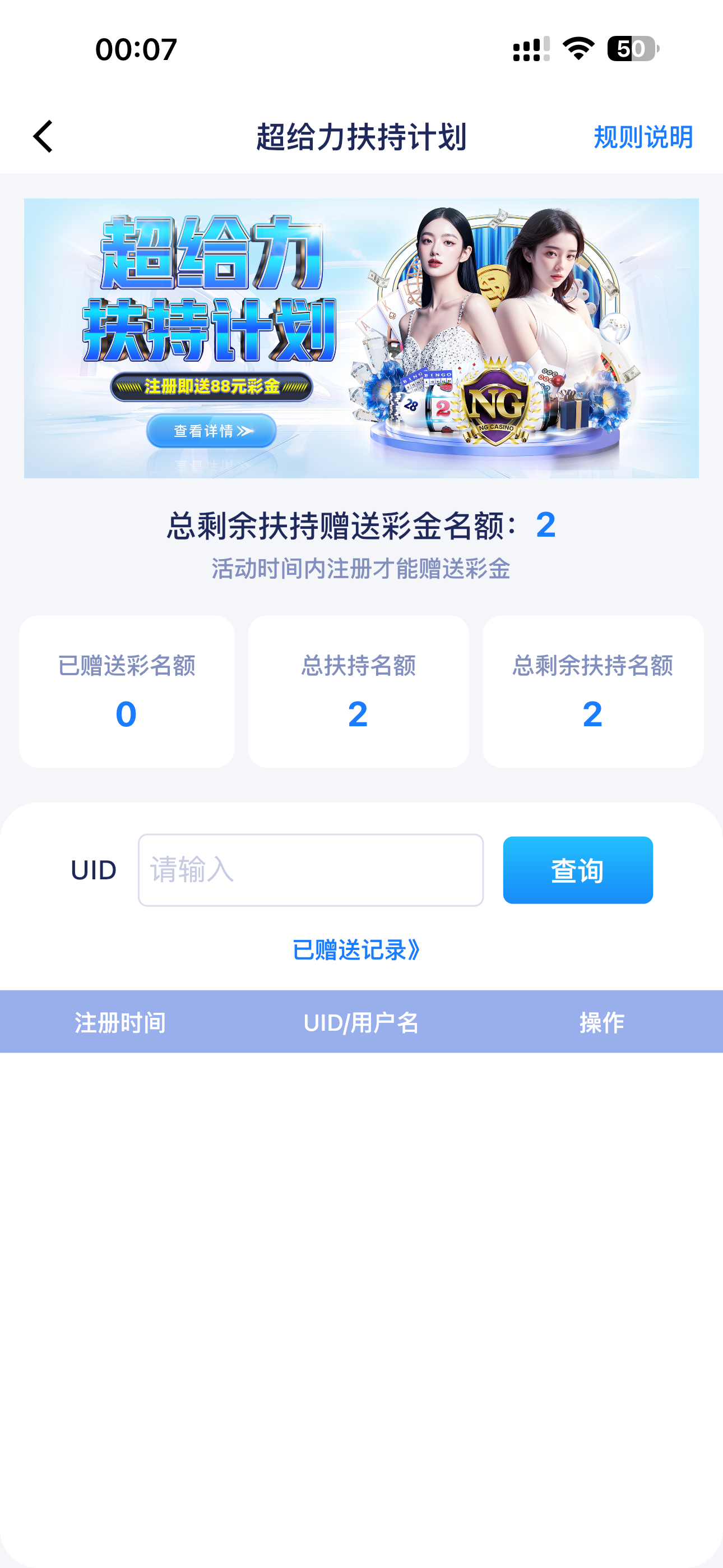 要求:并且充值50--100块钱任意随便一个金额,充了评论区发账号和uid到帖子,直接+88彩金下去