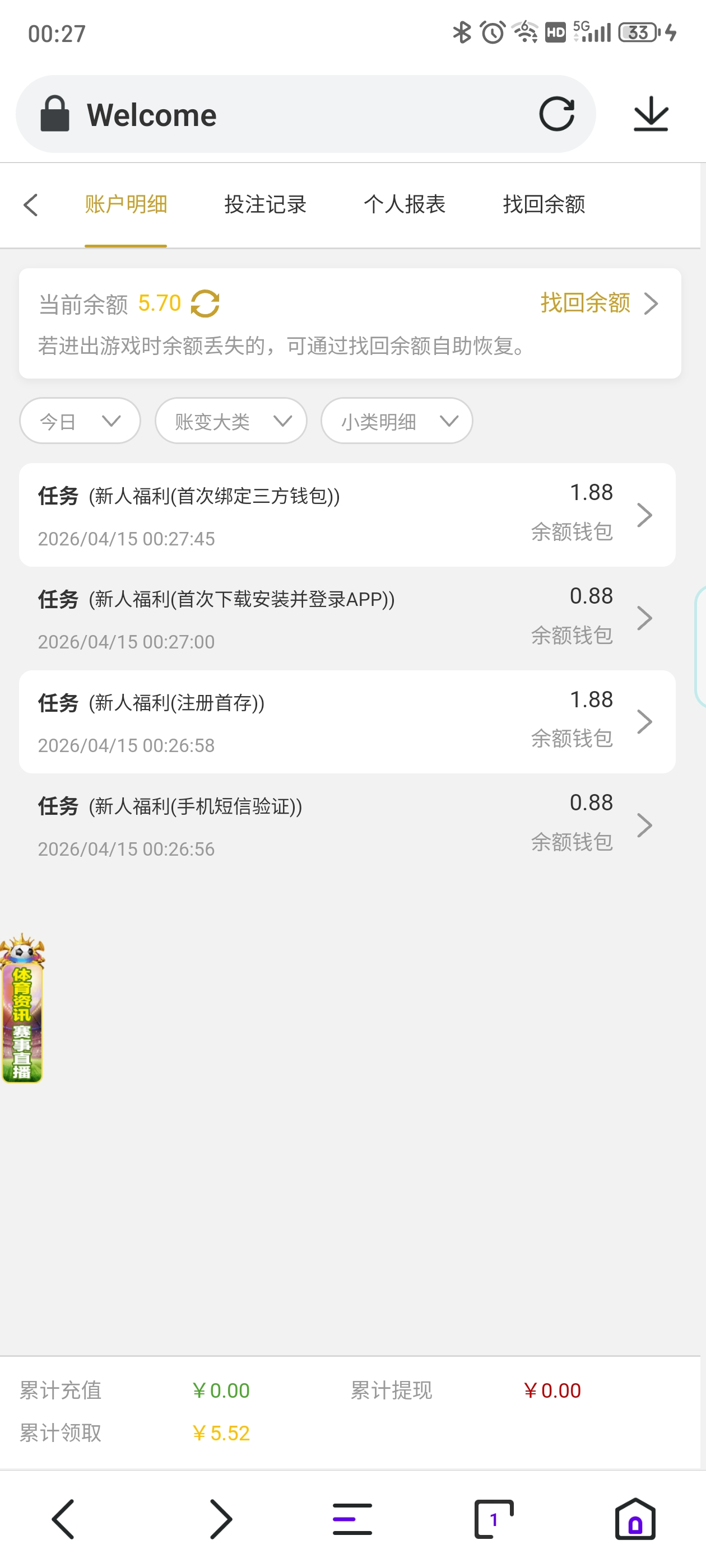 白嫖彩金