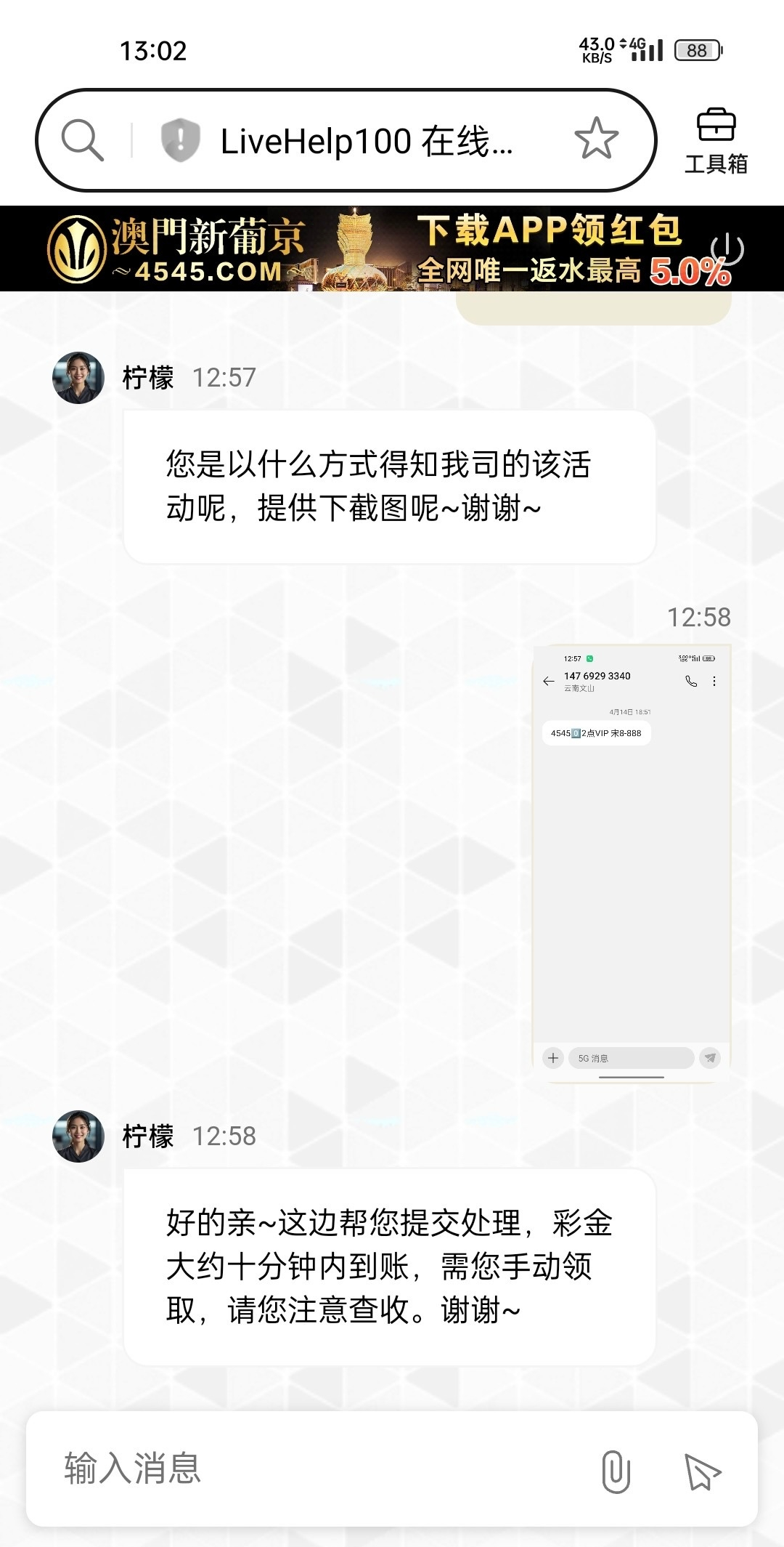 链接4545.com 注册玩过的短信及电话回访自行碰瓷