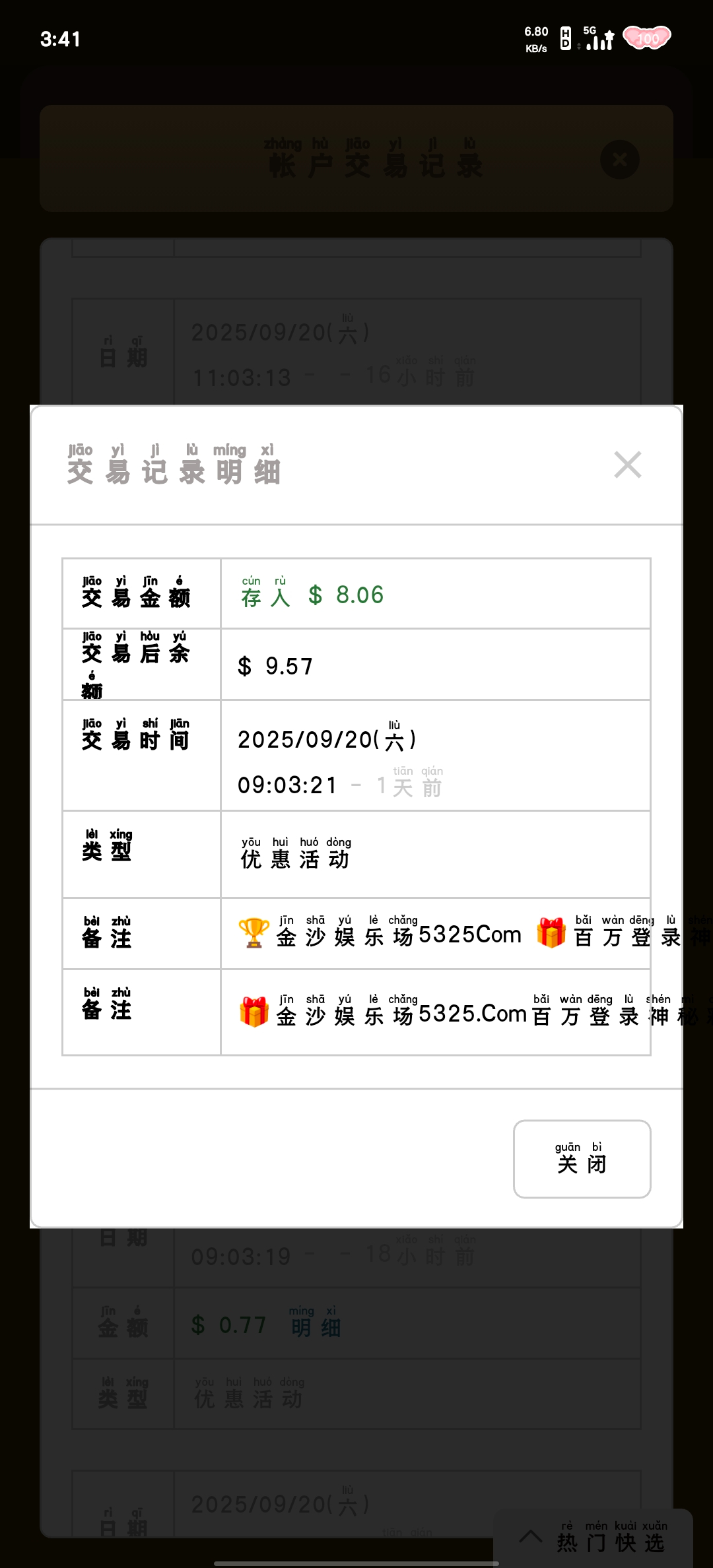 金沙5325回馈