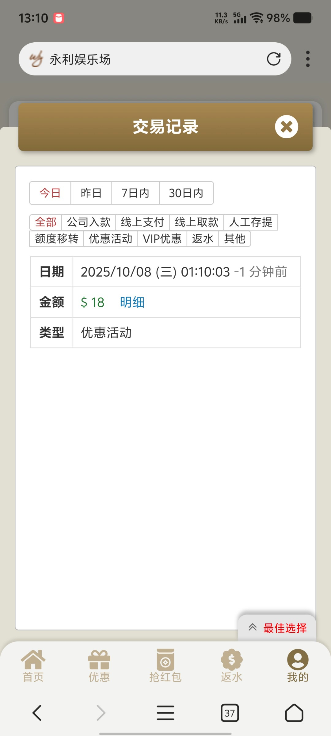 【永利476】送18