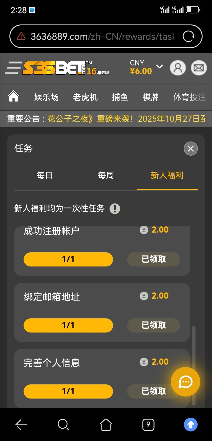 链接s36bet.com 邮箱注册 在左上角三条杠点进去任务 然后新人 然后绑定收款方式 可以usdt 名字 什么的 然后就可以领取8 绑定手机号再加2  可以邮箱领取一个号 手机号再注册一个 绑定u刷新一下就可以领取